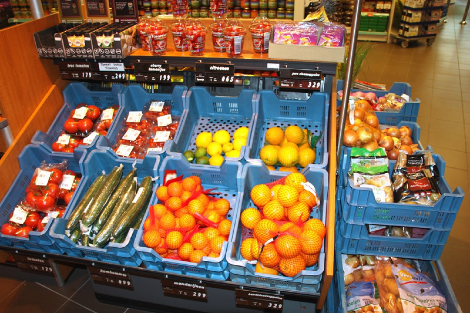 vakantie houden we van gemak. Daarom hebben we een grote selectie vers voorgesneden sla en groente (bv. gourmetgroente). Uiteraard ontbreekt het ook niet aan een ruim assortiment fruit zoals bananen, appels, sinaasappels, aardbeien, peren en seizoensgebonden fruit. Alle soorten groenten voor een uitgebreide maaltijd of voor bij de Barbecue zijn ook bij ons te verkrijgen. Verse jus d'orange en heerlijke smoothies kunt u zelf bij ons tappen.